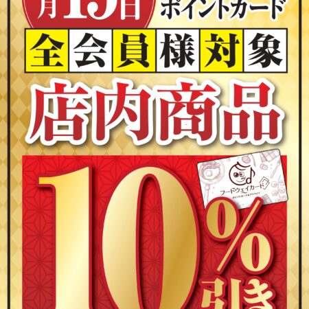 10.15(水) 店内商品10%OFF【フードウェイポイントカード会員限定】