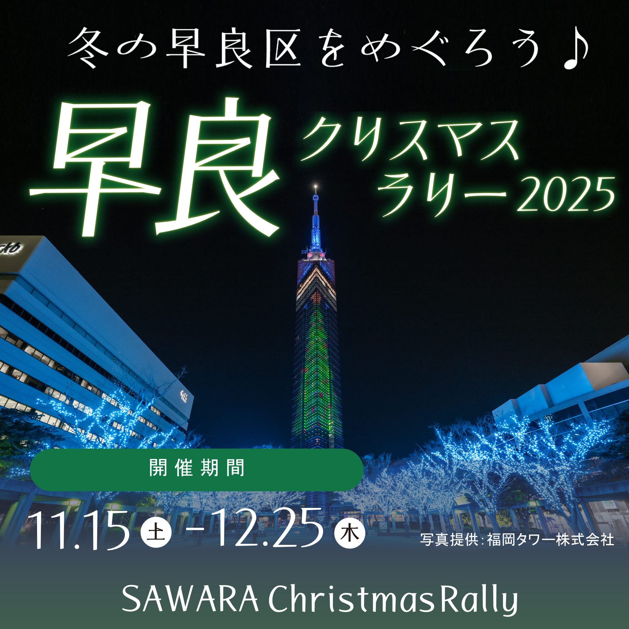 「早良クリスマスラリー」は、期間中に対象スポットをめぐり5つのスタンプを集めることで、豪華景品が当たる抽選に参加できるスタンプラリー企画となっています。