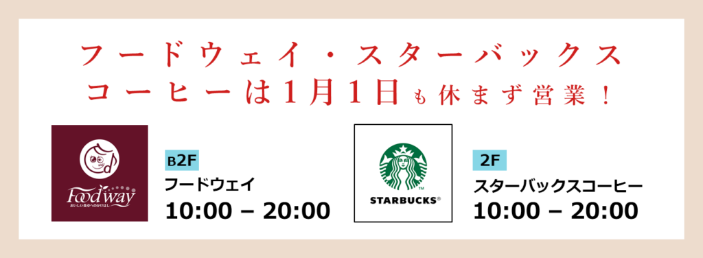 ・2026年1月1日(木) 休館 (フードウェイ・スターバックスコーヒーのみ営業)