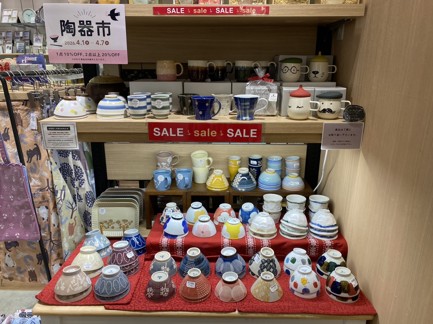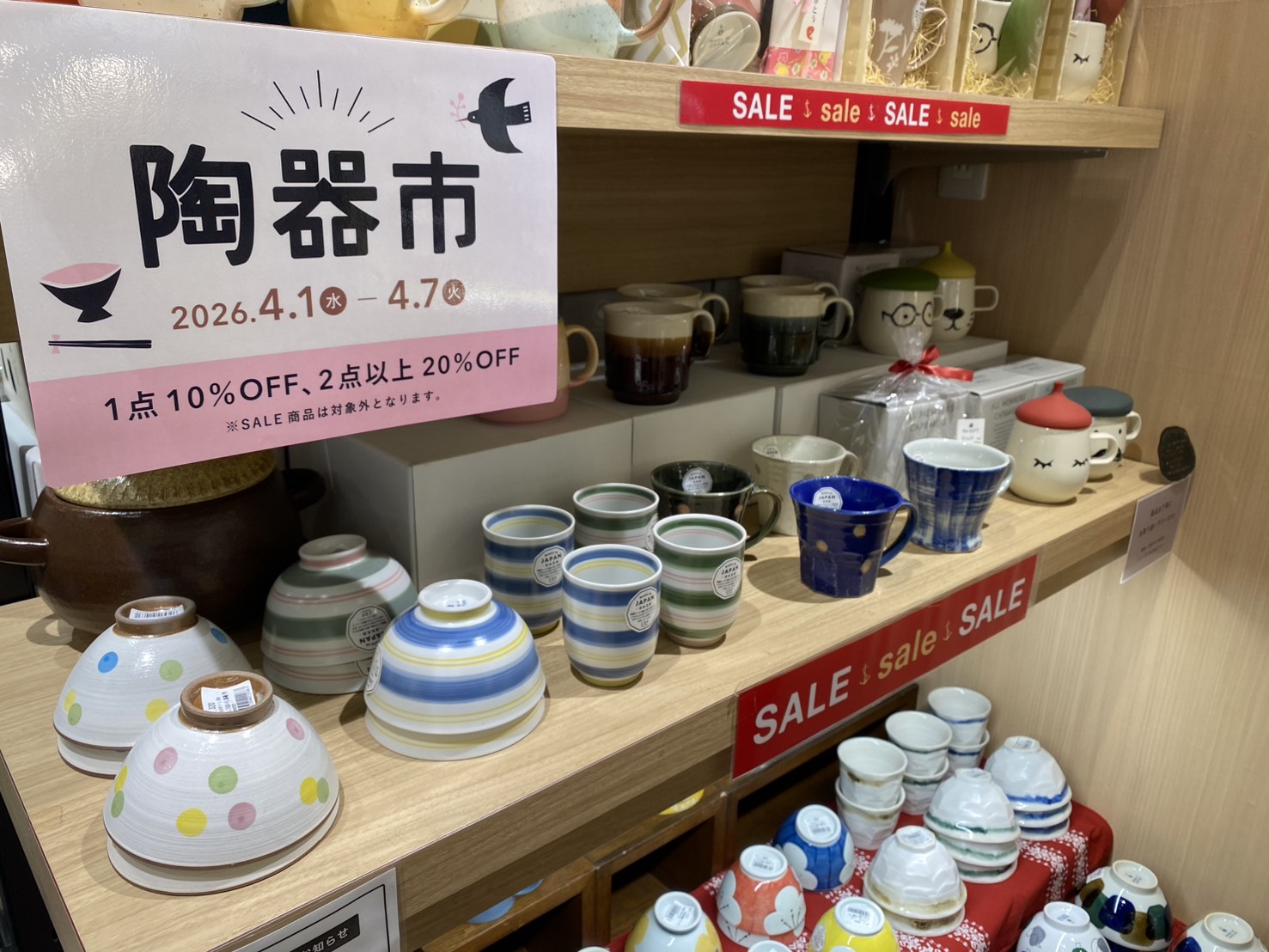 美濃焼や波佐見焼など、店内対象の陶器アイテムが、1点10%OFF、2点以上お買い上げなら20%OFFとなるセールを開催中です。
