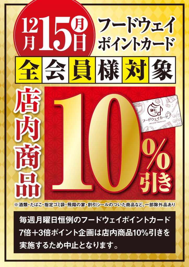 12/15 フードウェイ 10%OFF開催♪【フードウェイポイントカード会員限定】