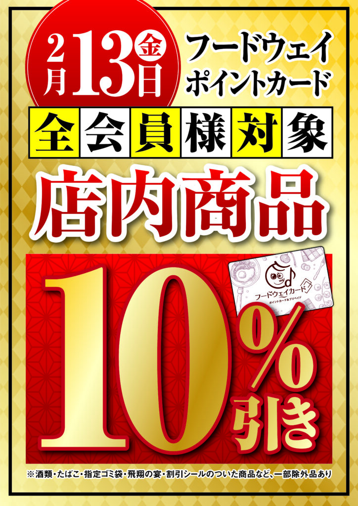 2月13日(金)限定、フードウェイポイントカード全会員様対象で