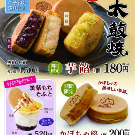 おいしさひとすじ、健康に良いお菓子をお客様に。素材にこだわり、季節を大切にした和菓子を用意しております。また、自家製餡たっぷりの太鼓焼は店内で毎日美味しく焼き上げております。