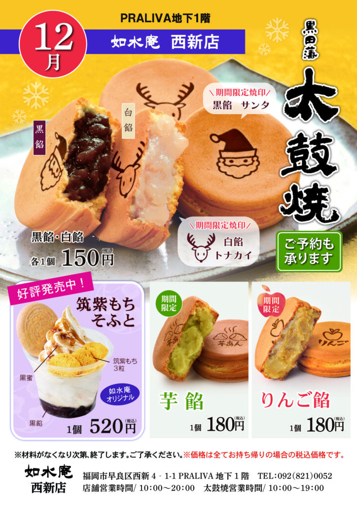 12月の太鼓焼のご案内