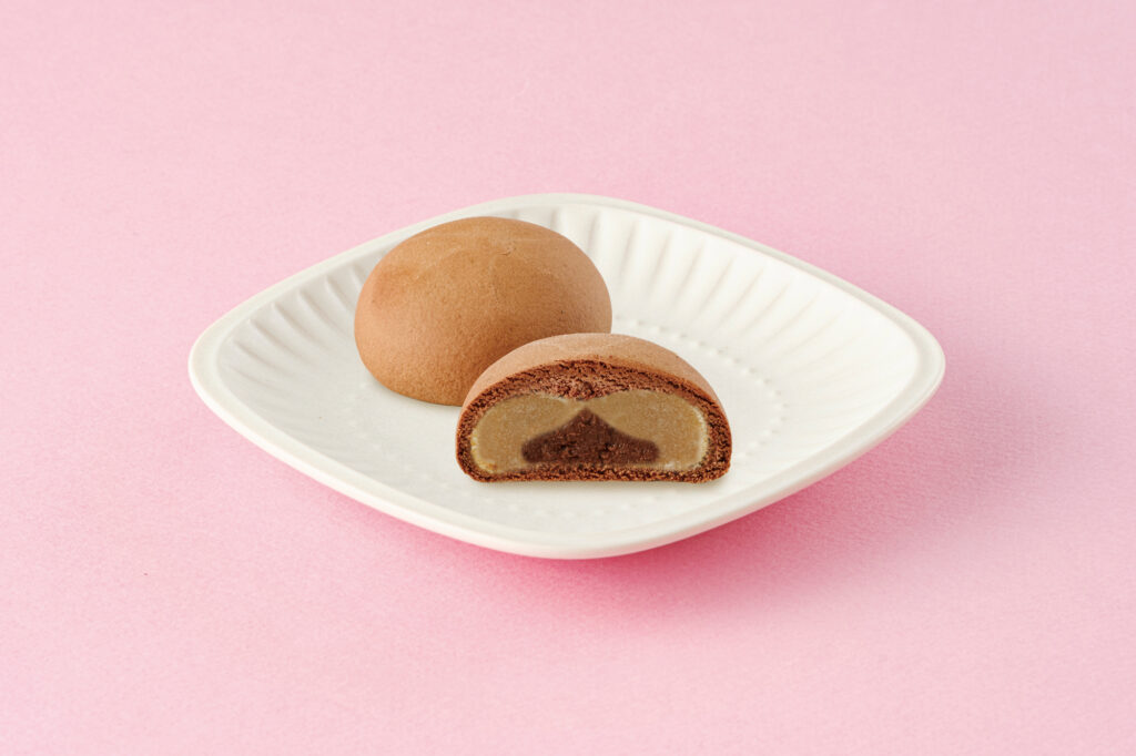 クーベルチュールチョコレートをココアを使ったしっとりとした焼き皮でミルク餡を包み、中には、やわらかいチョコクリームを詰めました。