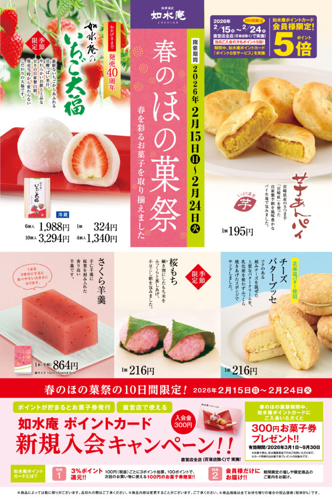 2月15日(日)〜24日(火)で「春のほの香祭」を開催いたします。